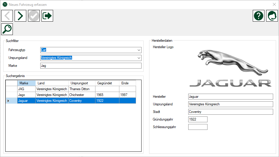 um Ihre Auswahl zu bestätigen und das Fenster zu schliessen. Der Hersteller und das Model sind nun mit ihrem Oldtimer verknüpft.